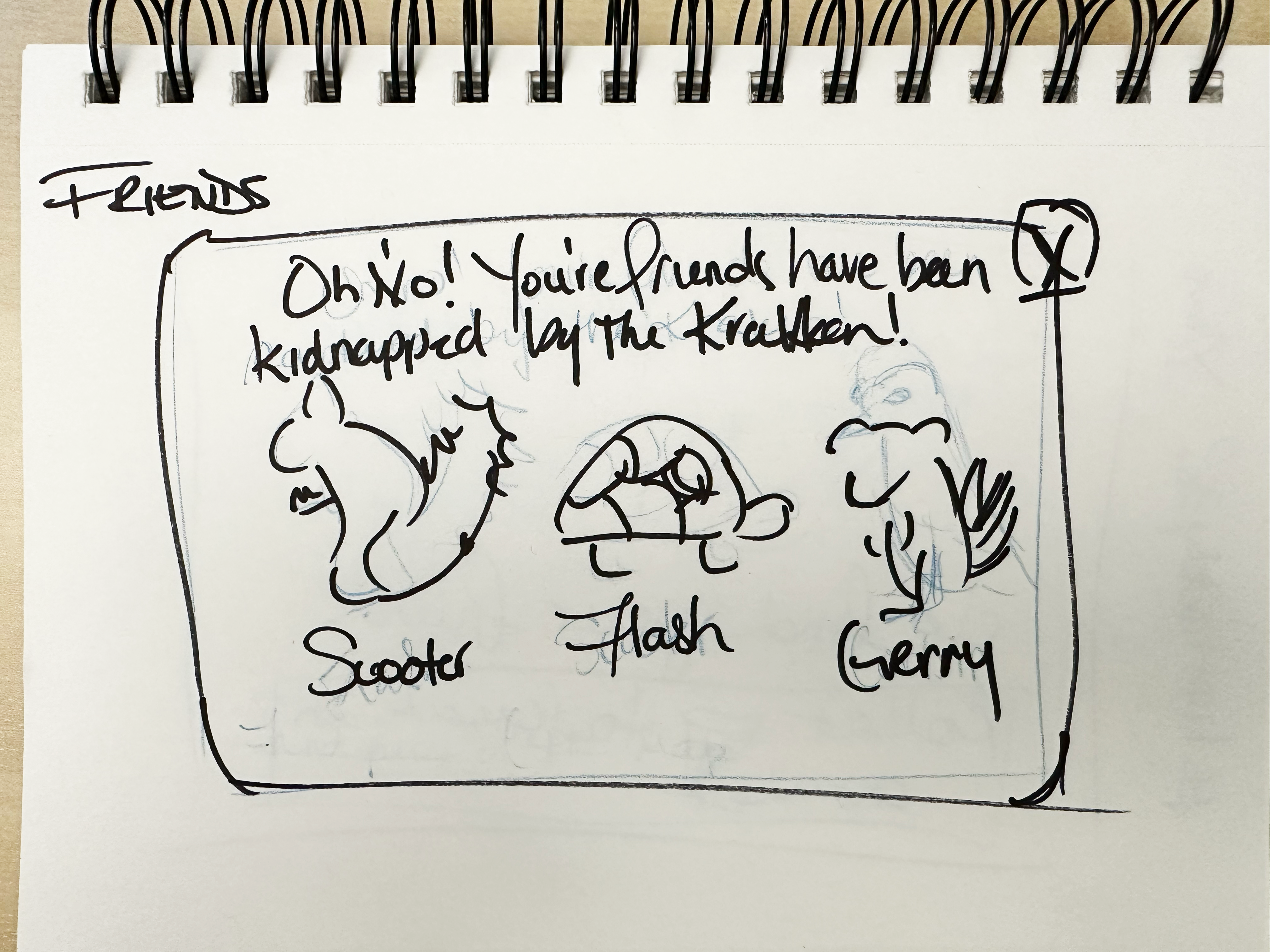 Sketching ideas for reward and informational screens, keeping the art simple and consistent throughout all the different types of pop-ups. Typography with a fairytale feel was used to maintain consistency with the overall game’s theme.
